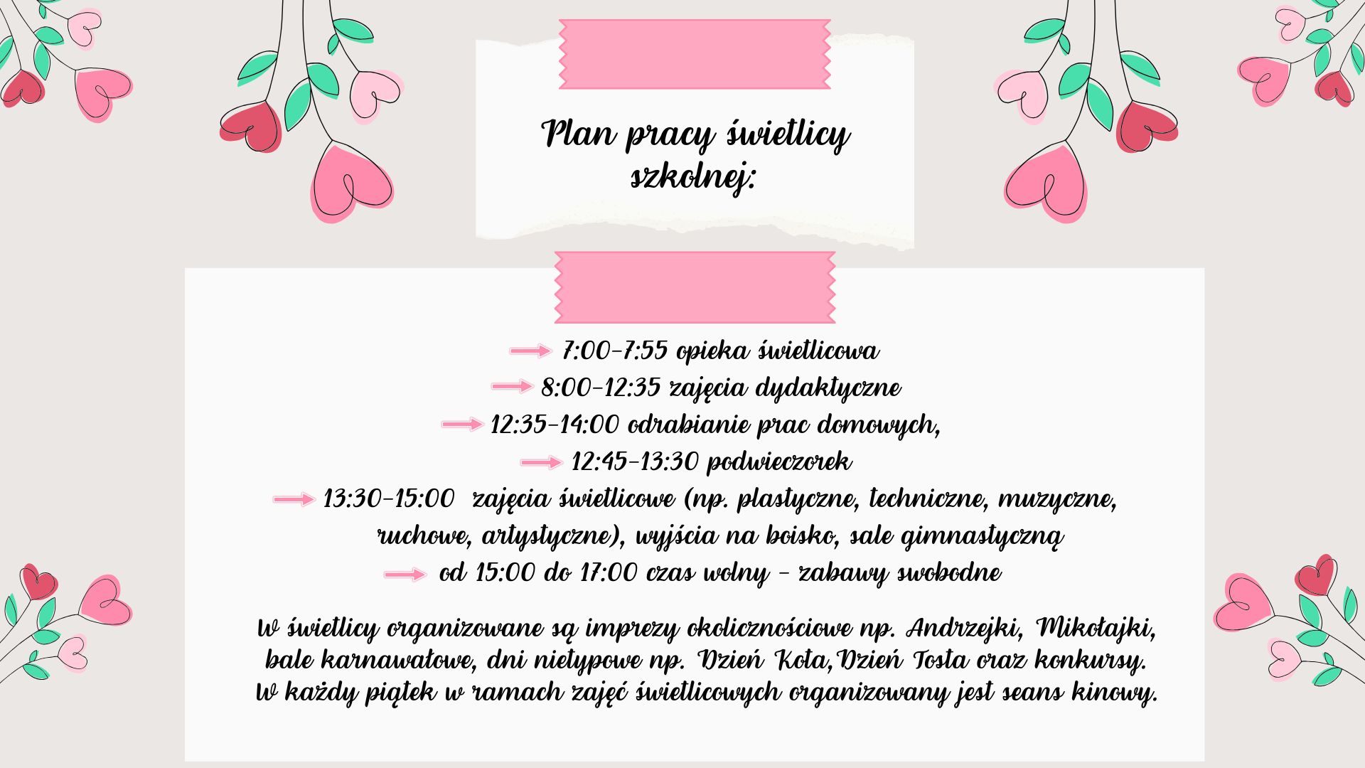 Świetlica szkolna czynna jest w godzinach 7:00 – 17:00